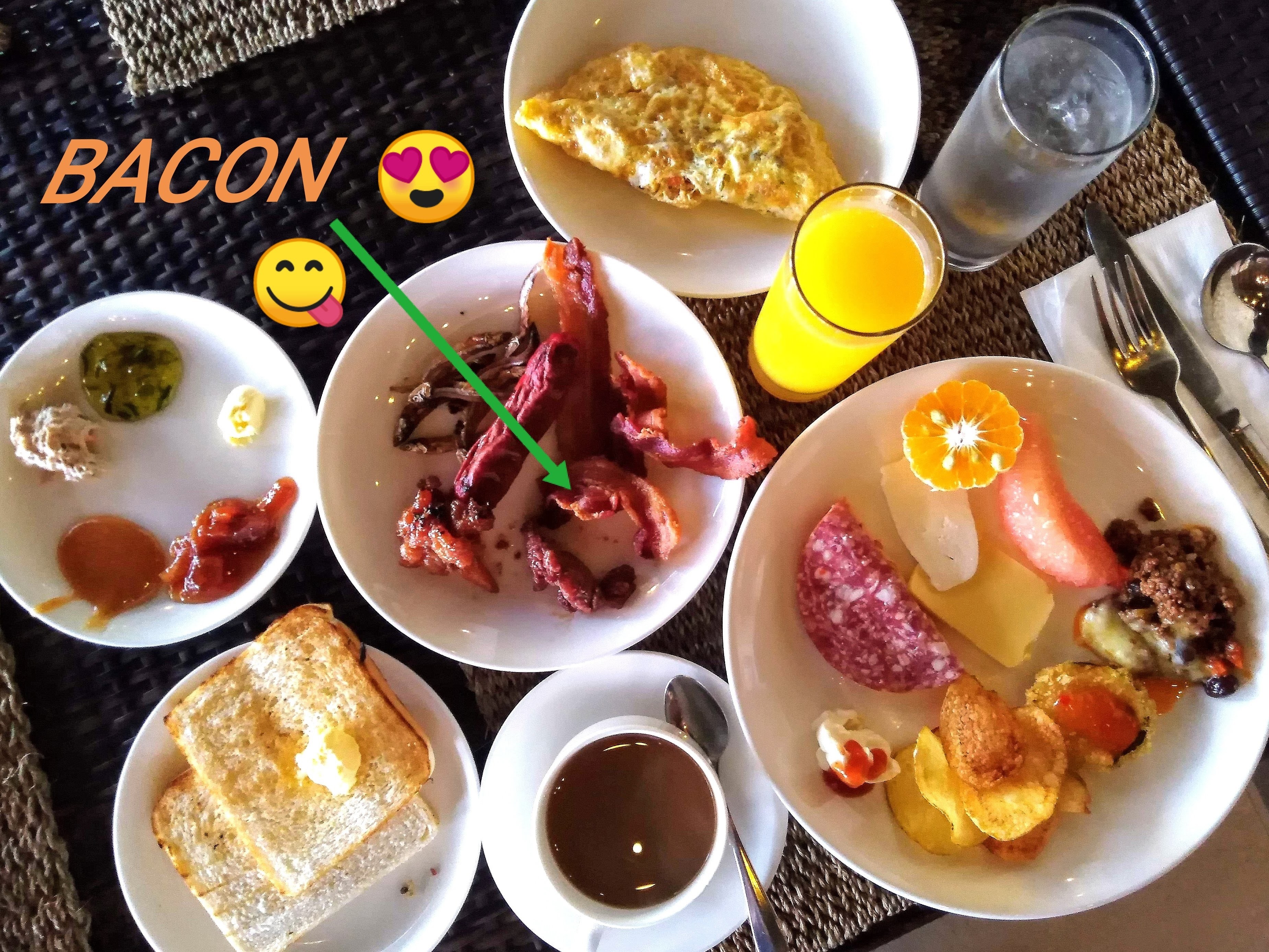 The morning after was breakfast. I always look forward to breakfasts in these occasions because I anticipate bacon to be served. And, bacon there was. Nice!